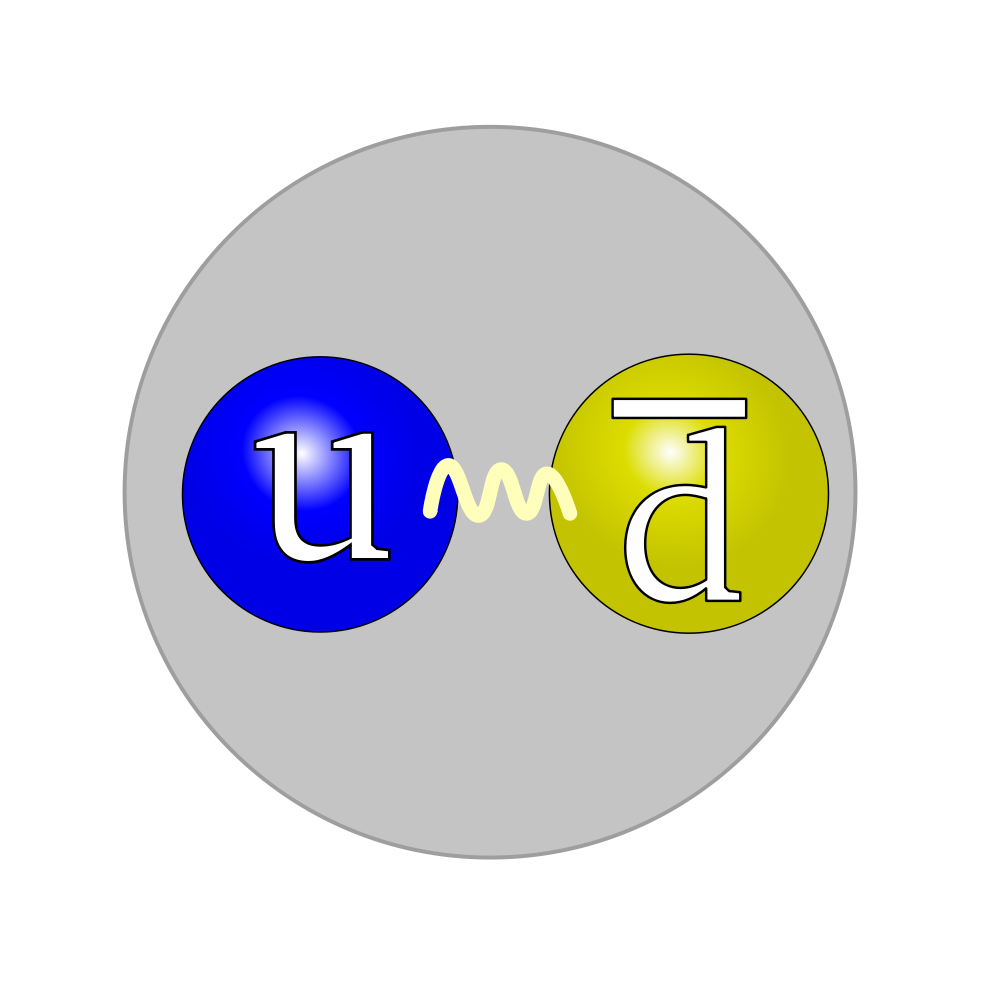 The quarks comprising a positive pion (or any hadron) were assumed to be exchanging gluons all the time, thereby causing them to bind together. This is analogous to the constant exchanges of photons that occur between atomic electrons and the nucleus of an atom. These bind the electrons to the nucleus.