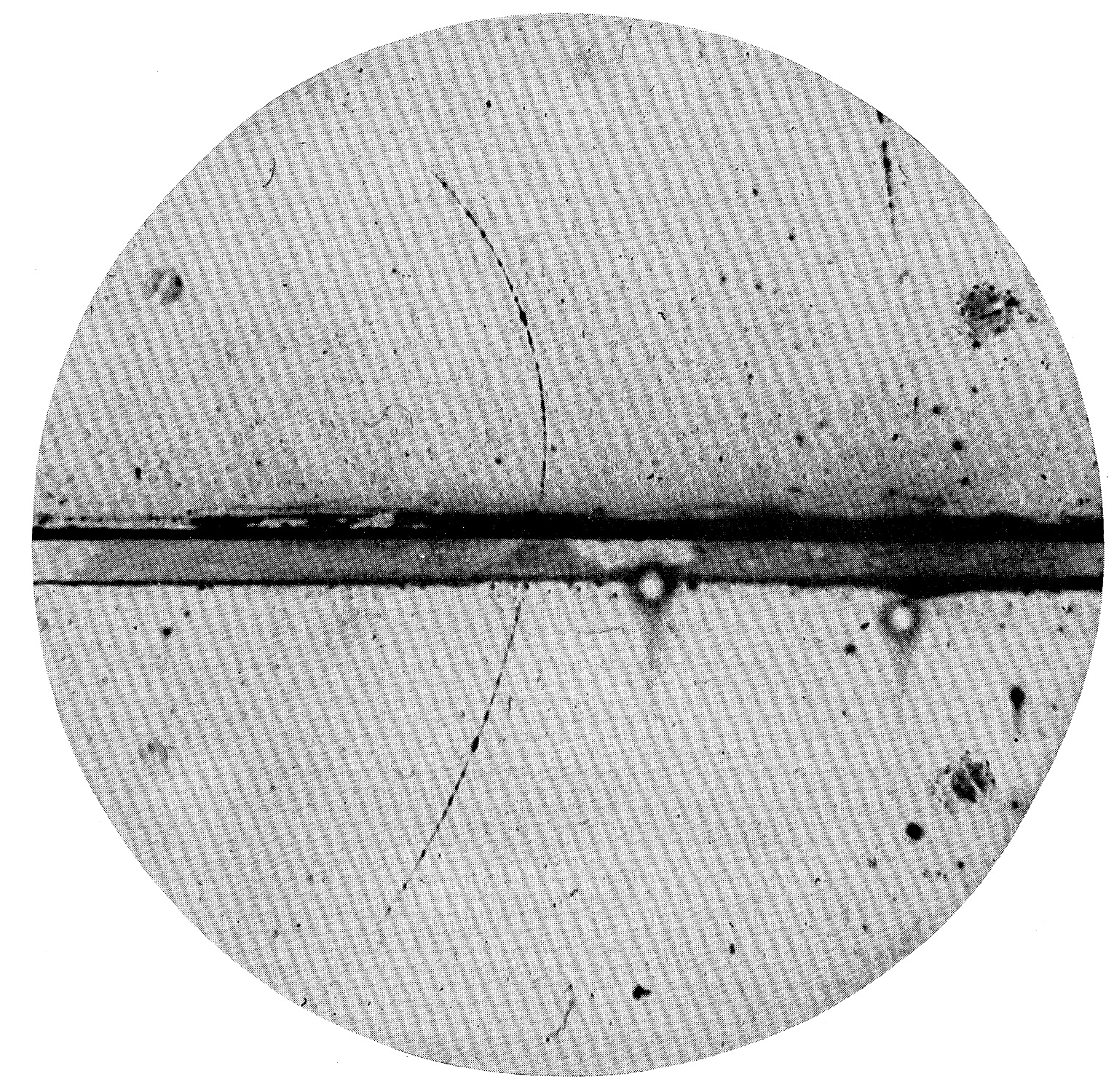 In the same type of experiment in which Anderson discovered the muon, he also discovered the anti-electron or “positron”.10 This is a positive particle with the same mass as the electron that annihilates on meeting an electron.